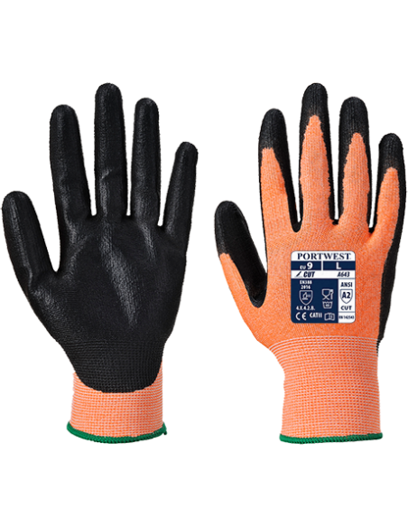 Un soporte resistente al corte nivel B para una moderada protección y con un recubrimiento de nitrilo esponjoso para mejor agarre. El luminoso soporte naranja facilita su identificación.