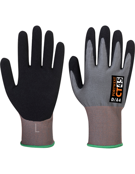 Este guante CT45 resistente a cortes y calidad Premium ofrece un excepcional Nivel D de protección al corte sin utilizar fibras de vidrio o acero. Recubierto con Nitrilo esponjoso el CT45 ofrece un agarre extraordinario tanto en seco como en mojado. El soporte sin costuras 100% transpirable ofrece una enorme comodidad al usuario.