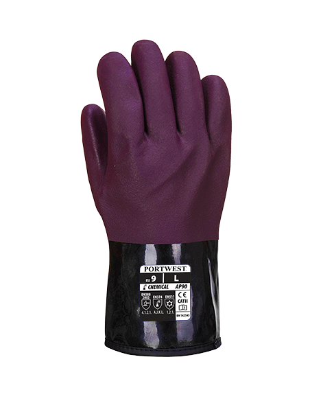 Presentamos el último guante resistente a sustancias químicas que protege en hostiles ambientes fríos. Este guante tiene un forro de polar para una comodidad superior. El doble recubrimiento tiene un acabado rugoso en la palma que proporciona un agarre superior en entornos con aguas o aceites.