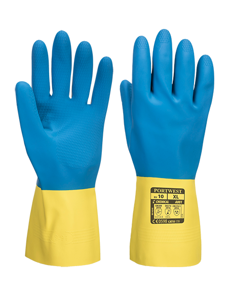 Guante de látex de doble capa con un relieve anti-resbalón para un buen agarre en seco y en mojado. Ideal para la industria química procesado de alimentos y limpiezas industriales. Satinados para mayor duración.