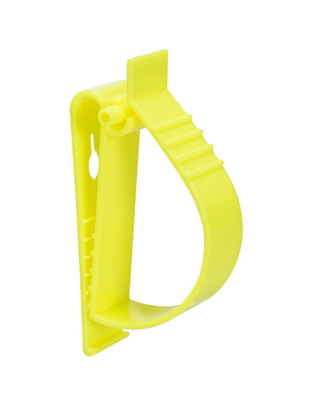 Este clip universal es apto para su uso en diferentes áreas. Puede ser colocado en el cinturón para sujetar una amplia variedad de EPIs cuando no se usen alternativamente puede ser fijado a una pared/estructura como solución de almacenaje. Solución flexible duradera y libre de metales.