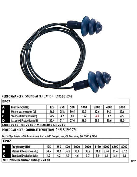 Tapones detectables y reutilizables de material TPR (goma termoplástica). La propiedad de ser detectables se consigue mediante una avanzada tecnología añadiendo virutas metálicas al material TPR durante el proceso de inyección sin la necesidad de tener que aportar la bola metálica detectable. Recomendados para su uso en entornos de industria de alimentación. Cada par viene en una bolsa higiénica de plástico con las instrucciones de ajuste.