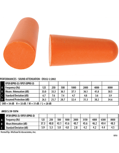 Recarga de 500 pares de tapones de PU desechables para el dispensadorn EP20. Estos suaves tapones auditivos sellan el canal del oído con una suave espuma de lenta recuperación para comodidad y atenuación de ruido excelentes.