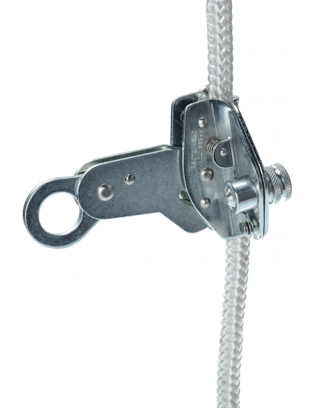 Si hubiera una caída el aparato se bloquea y evita el descenso. La anilla de enganche permite su conexión con una línea de amarre o con otros productos. El dispositivo para liberarlo permite que sea enganchado y desenganchado en cualquier lugar de la línea de vida. El dispositivo liberador permite que el aparato siga al usuario facilitándo su libertad de movimiento.