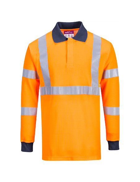 Este polo ofrece una alta protección según múltiples normas. El ligero tejido usa una singular mezcla de fibras que combina una protección óptima con una excelente transpiración y control de humedad. Sus características incluyen los puños de contraste en color marino para una mayor practicidad y comodidad.