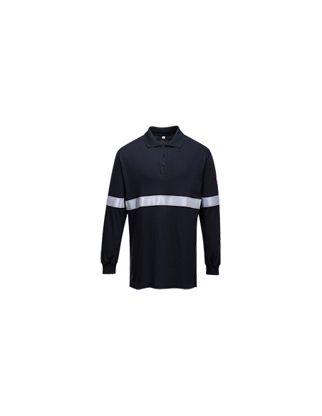 Este polo de mezcla Modacrílica es ideal para las condiciones más calurosas o como capa extra con prendas exteriores cuando se requiera una capa aislante extra. La cinta reflectante resistente a la llama ofrece una mayor visibilidad en situaciones con poca iluminación.
